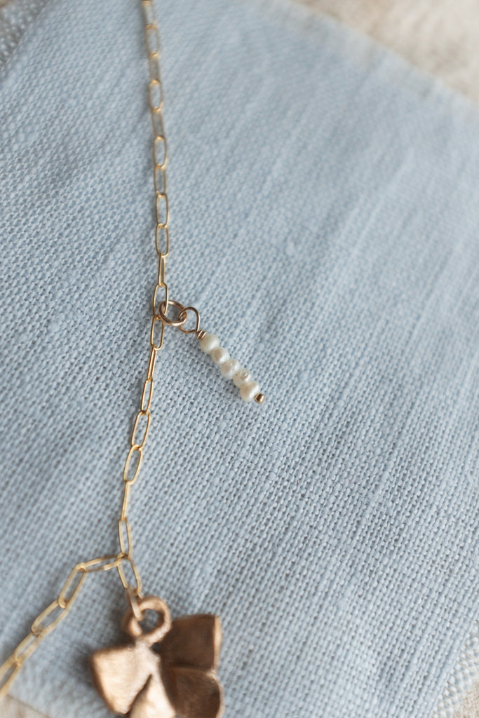 Add a tiny touch of pearl to your necklace with these wee pearls on gold-filled finishes.